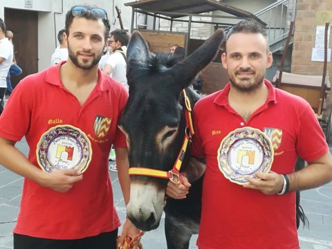 Nella corsa a pelo ha vinto Intrigo (San Donato) davanti a Bricchio (San Facondino), Recchia (San Martino) e Ares (San Benedetto). Domenica prossima la piazza darà il responso senza appello.