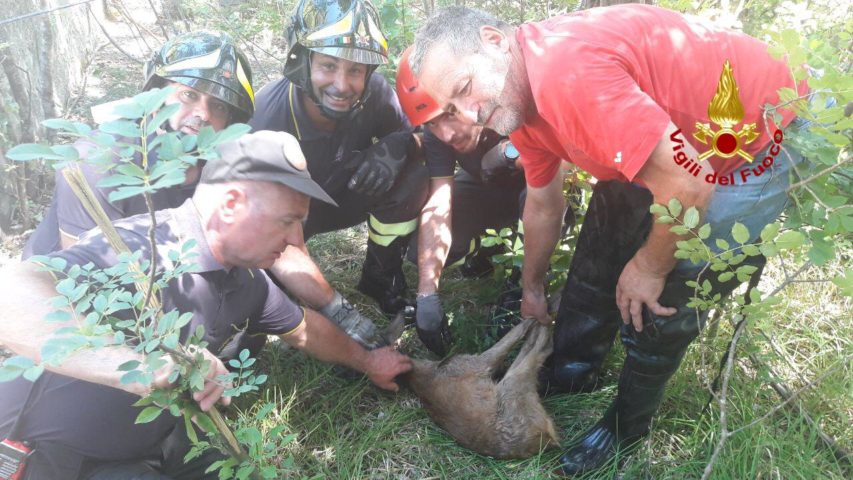 I Vigili del Fuoco del distaccamento di Gaifana hanno tratto in salvo poco fa un capriolo che era caduto accidentalmente in un vascone nei pressi del Santuario della Madonna del Divino Amore a Gualdo Tadino.