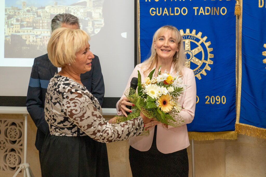 L’intervento del governatore si è poi incentrato sul tema rotariano “Immagina il Rotary” e sull’importanza dei concetti di diversità, equità ed inclusione, per poi salutare l’ingresso del nuovo socio, la dottoressa Giuseppina Salvucci, oncologa.