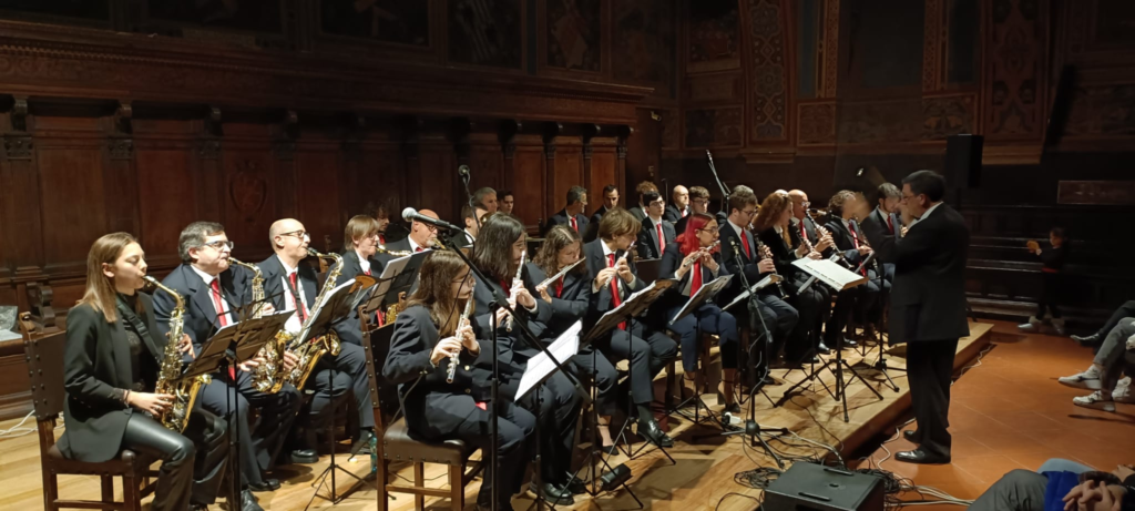 A Perugia, sempre l’8 dicembre all’interno della prestigiosa Sala dei Notari, ha tenuto il concerto la Banda Musicale di Gualdo Tadino che anche questa volta ha visto la presenza di un numeroso pubblico. La Banda, diretta dal maestro Angelo Arnesano, si esibirà a Gualdo Tadino l’8 gennaio alle ore 17 al teatro Talia.