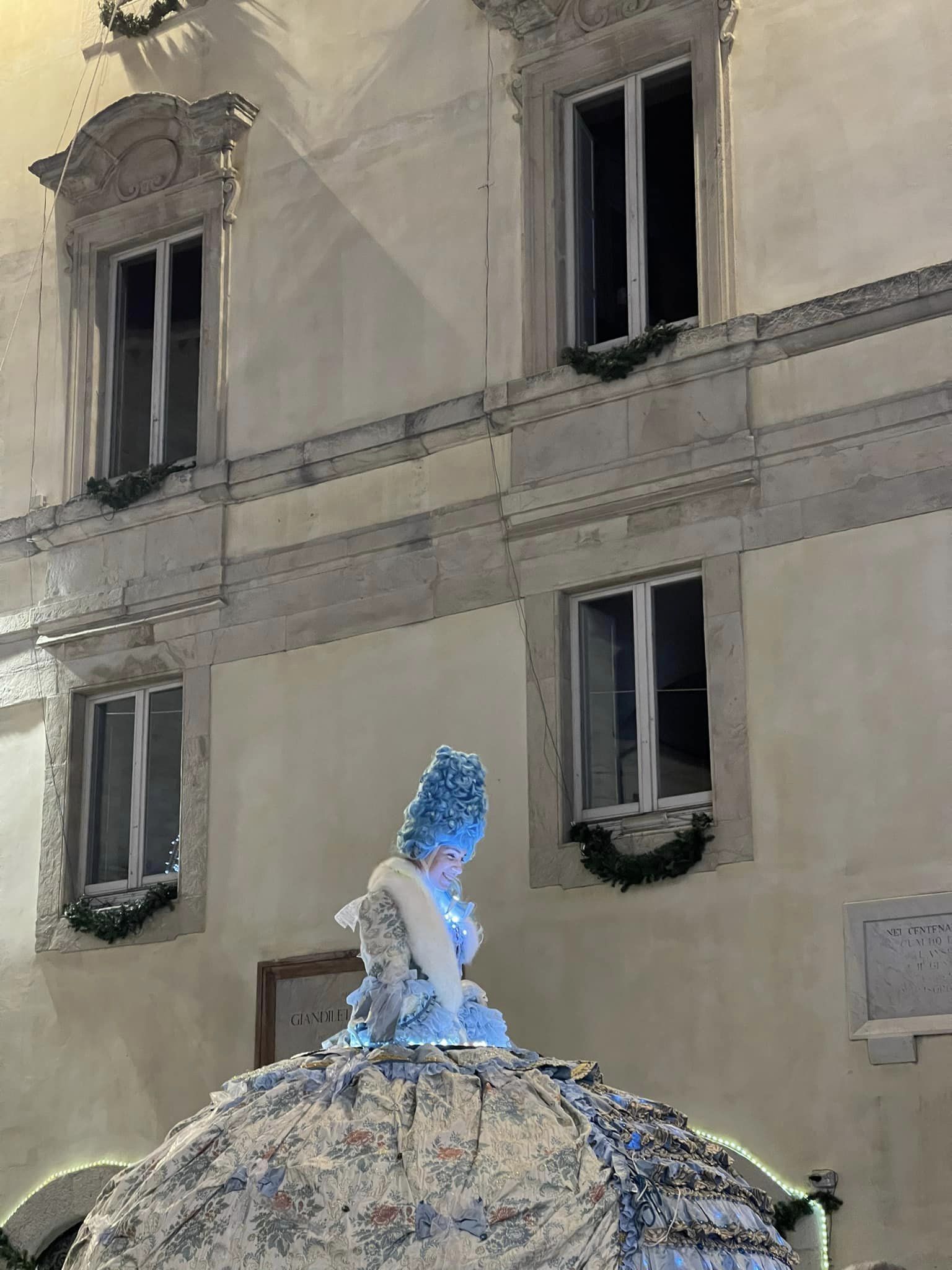 A colpire l’attenzione di tutti è stata l’esibizione di Madame Operà, la regina degli artisti di strada, con il suo spettacolo itinerante alto quasi 4 metri che si è presentata al pubblico in un meraviglioso abito in stile ‘700 e una suggestiva versione luminosa.