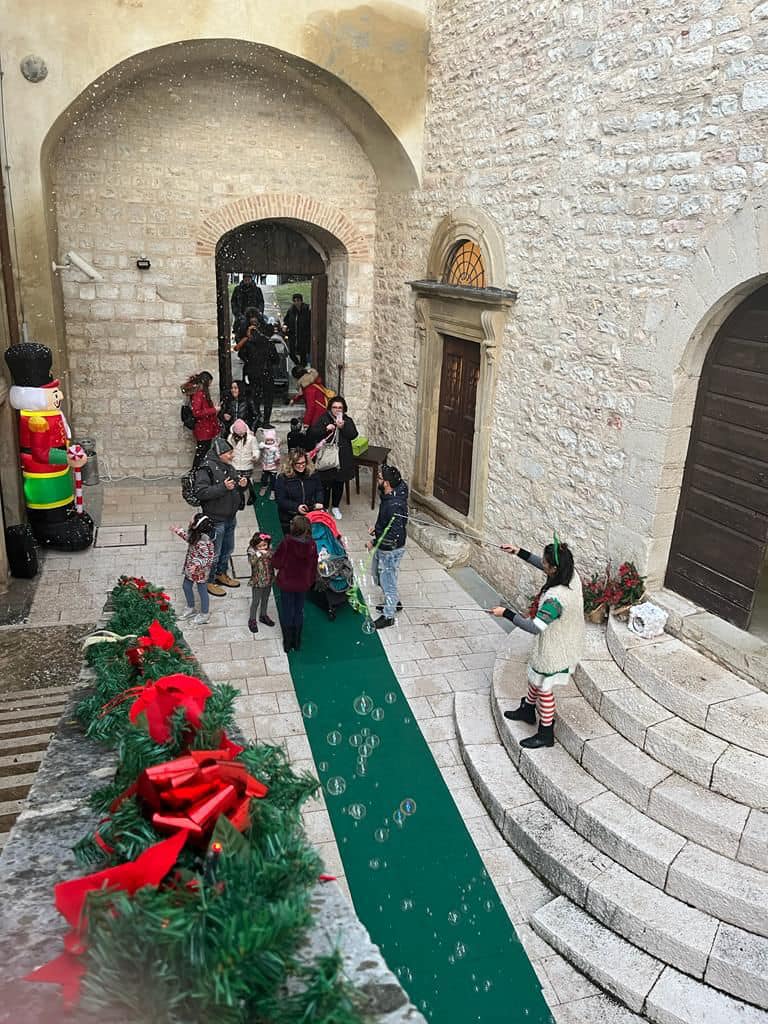Gualdo Tadino ha puntato anche questa volta su iniziative rivolte alle famiglie, con il trenino preso d’assalto dal primo pomeriggio e la Rocca Flea, trasformata nel Villaggio di Babbo Natale, che è stato un luogo di festa per tanti bambini coinvolti nel Laboratorio degli Elfi.