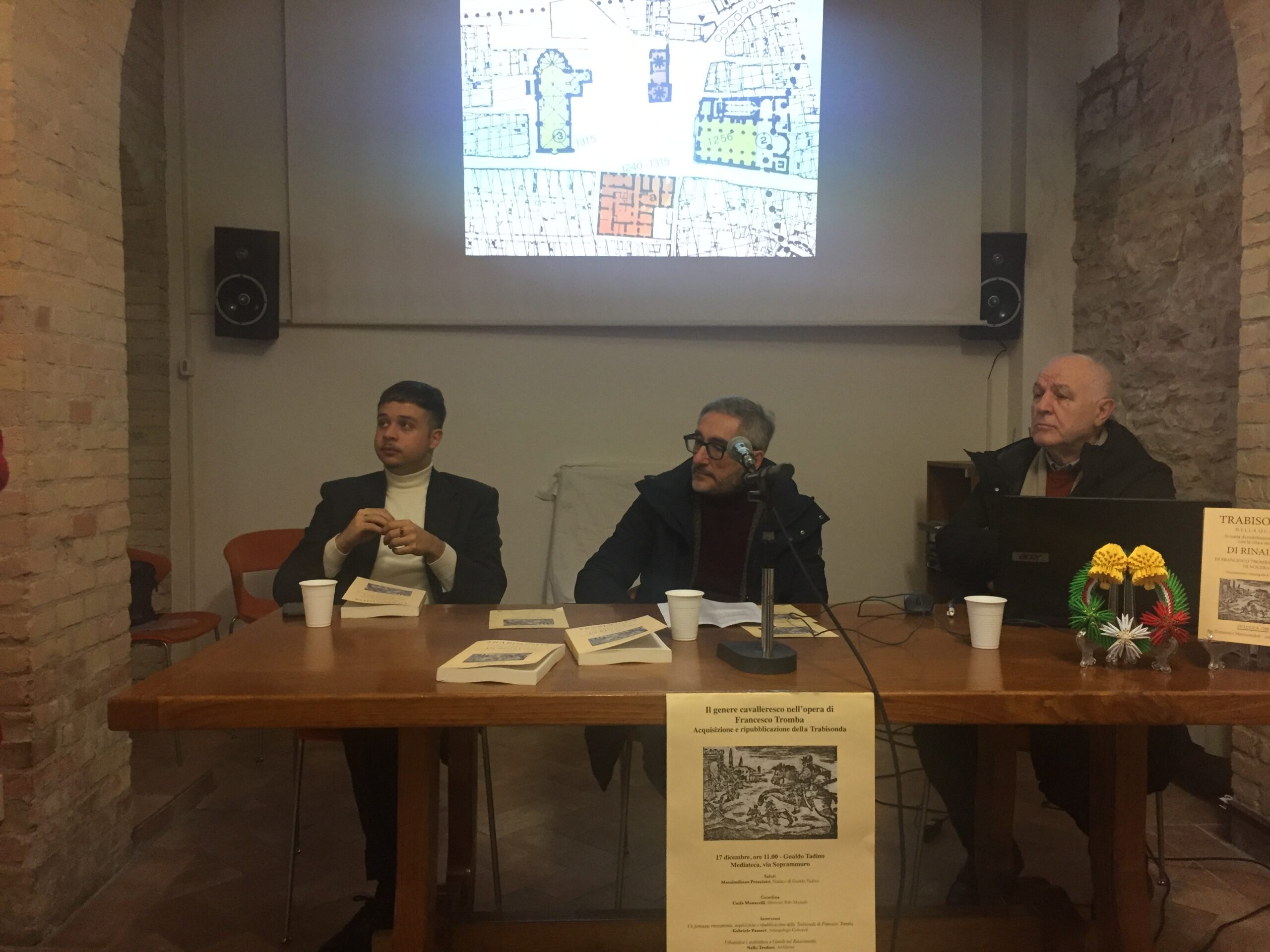 Una Mediateca del Museo dell’Emigrazione gremita ha accolto sabato 17 dicembre il ritorno in città della “Trabisonda” del poeta gualdese Francesco Tromba, attivo nella prima metà del XVI secolo. Lo scritto originale è l’edizione lucchese del 1788, la sola, insieme a quella veneziana del 1682, a recare al frontespizio il nome dell’autore.