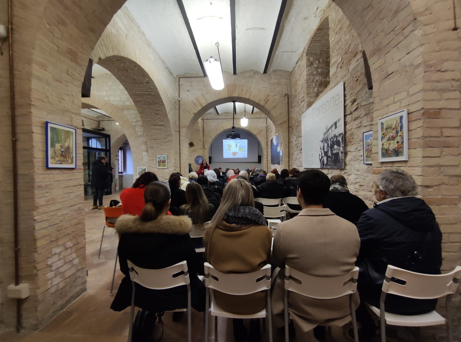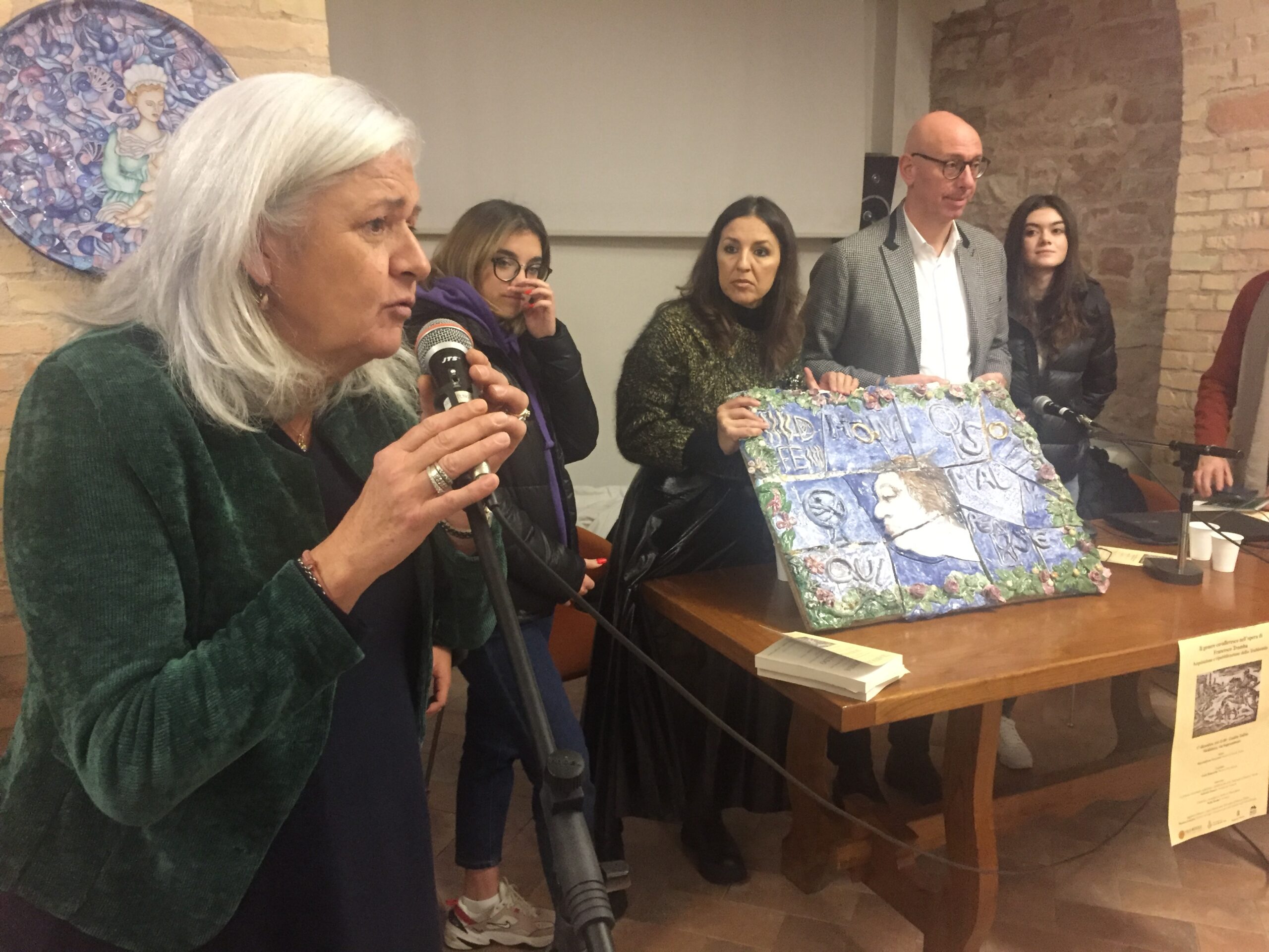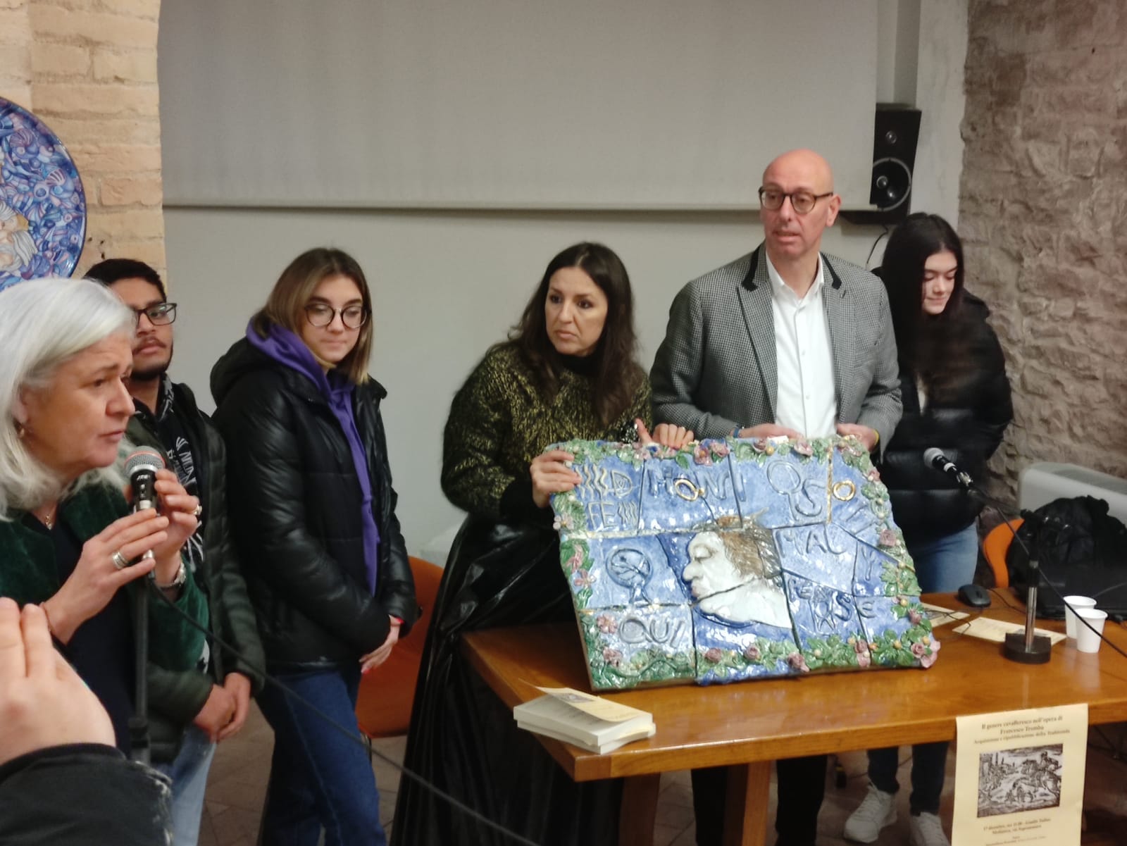 Al termine delle relazioni è stato presentato per la prima volta al pubblico un pannello di ceramica realizzato dagli studenti della classe V°A del Liceo Scientifico e V°M del Liceo Linguistico dell’Istituto Casimiri, per il corso di ceramica artistica. L’opera, realizzata per celebrare i 600 anni dalla nascita di Federico da Montefeltro, è stata illustrata dalla responsabile del progetto, la professoressa Katia Tittarelli, e dalla coordinatrice, la professoressa Caterina Calabresi, alla presenza della vicepreside Adonella Biagioli.