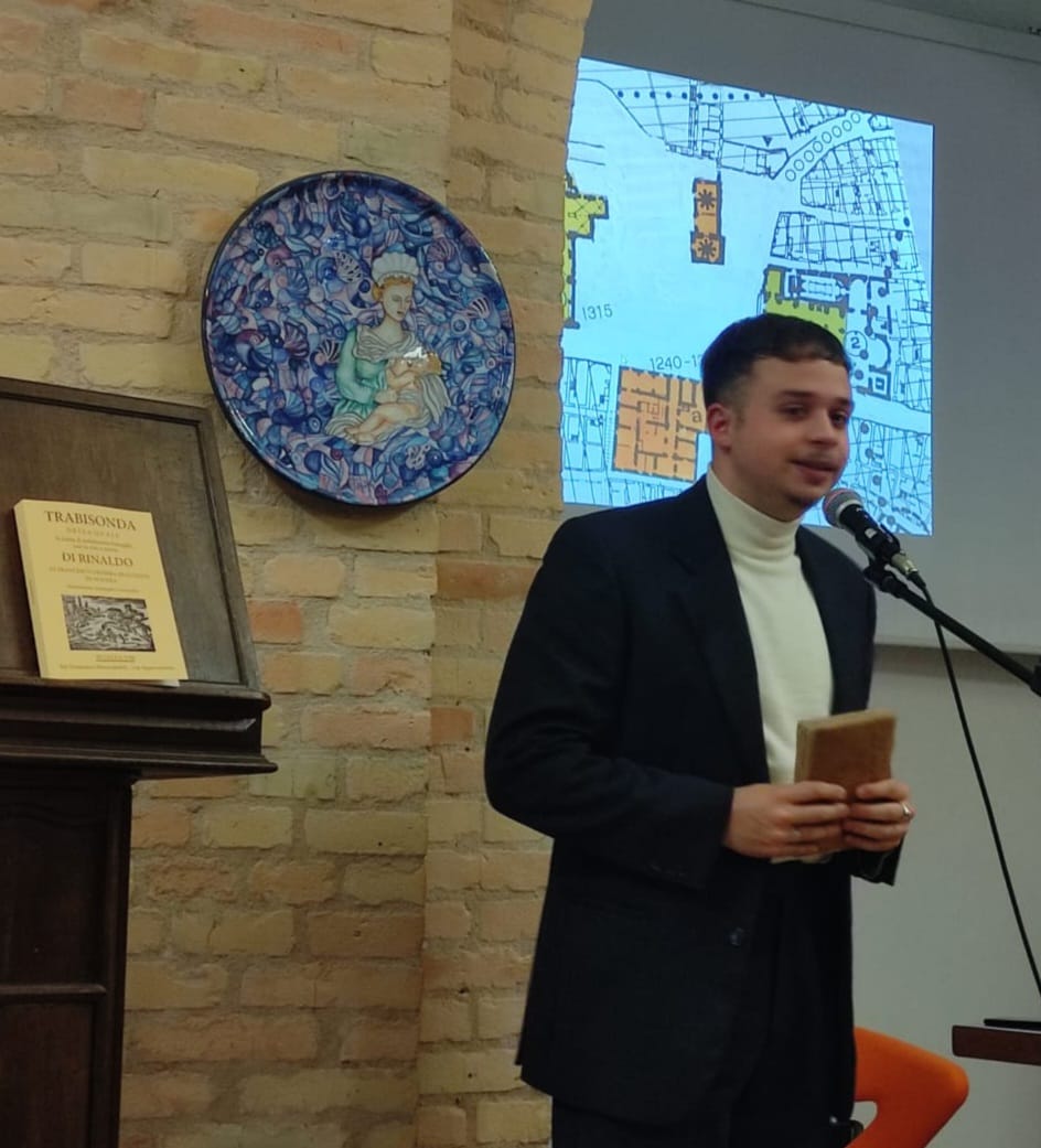 L’incontro è stato coordinato da Catia Monacelli, direttore del Polo Museale di Gualdo Tadino, con gli interventi dell’antropologo culturale Gabriele Passeri, autore del ritrovamento dell’opera, dell’architetto Nello Teodori, che ha tracciato un quadro urbanistico-architettonico della Gualdo dell’epoca, e di Donato Loscalzo, docente di Lingua e Letteratura greca all’Università degli Studi di Perugia, che ha parlato delle suggestioni letterarie e le istanze culturali nella “Trabisonda” di Francesco Tromba.