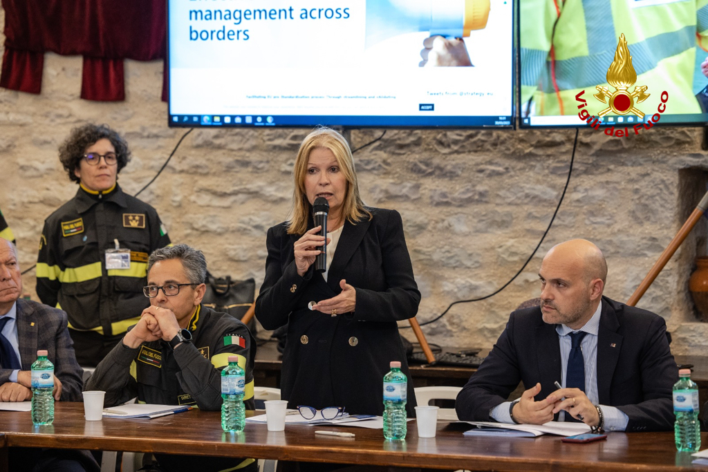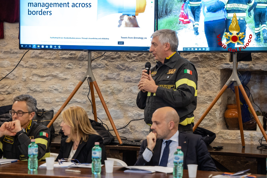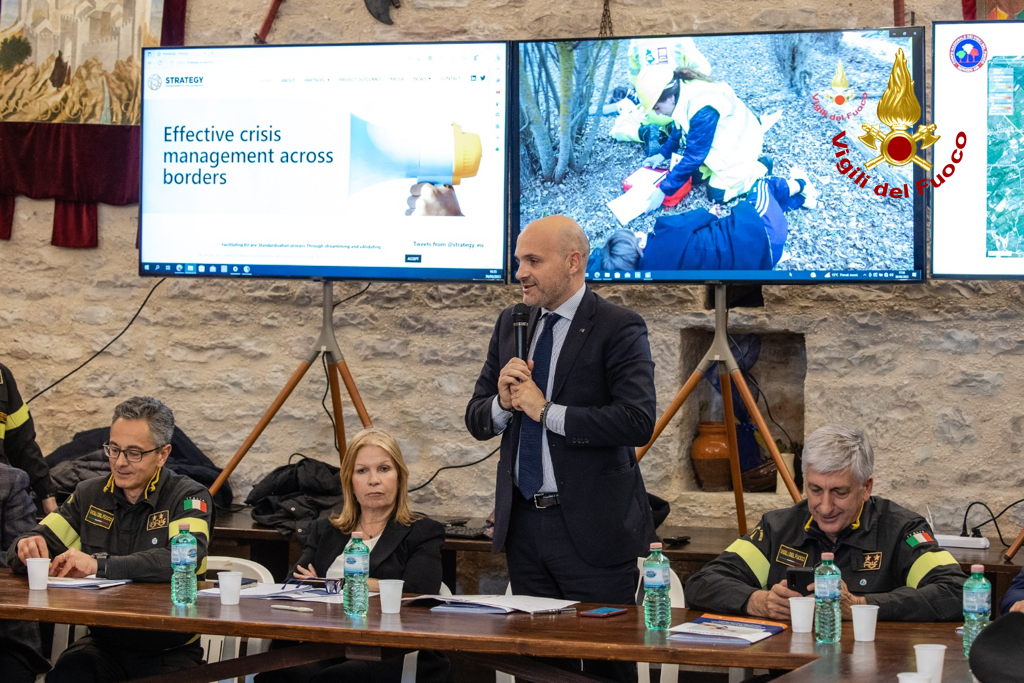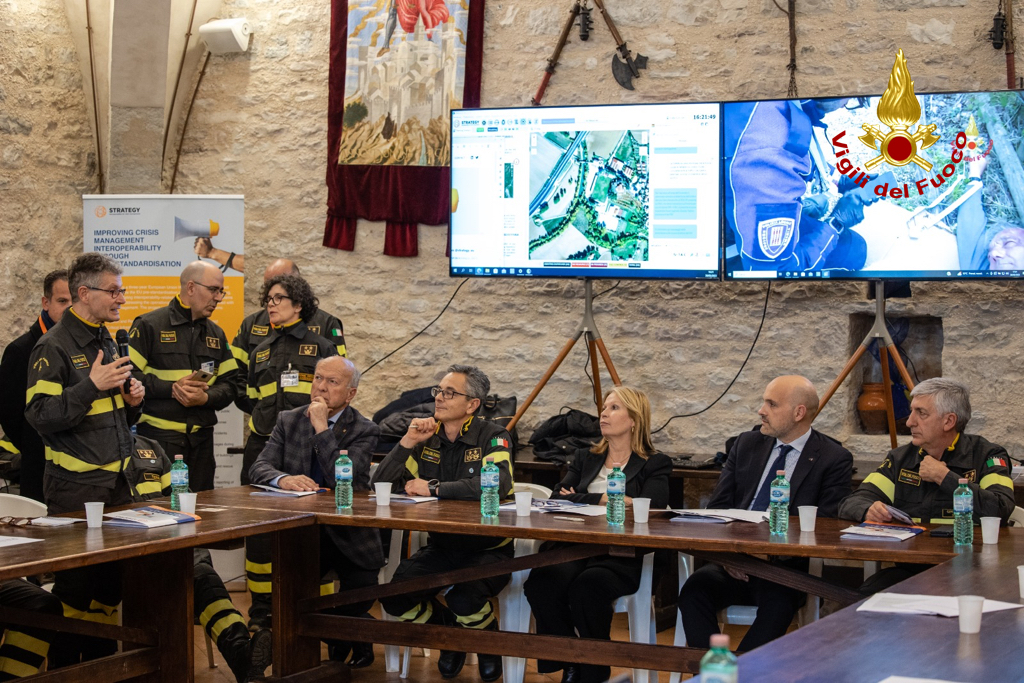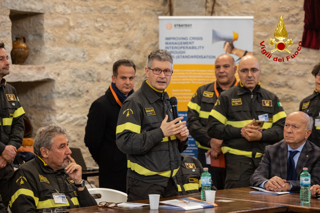 “L’esercitazione che si è svolta oggi in Umbria, a Gualdo Tadino e a Valfabbrica, è parte culminante del progetto europeo Strategy, organizzato e coordinato dal Corpo Nazionale dei Vigili del Fuoco italiani e prevede la messa a punto di standard nel settore dell’emergenza a livello europeo”.