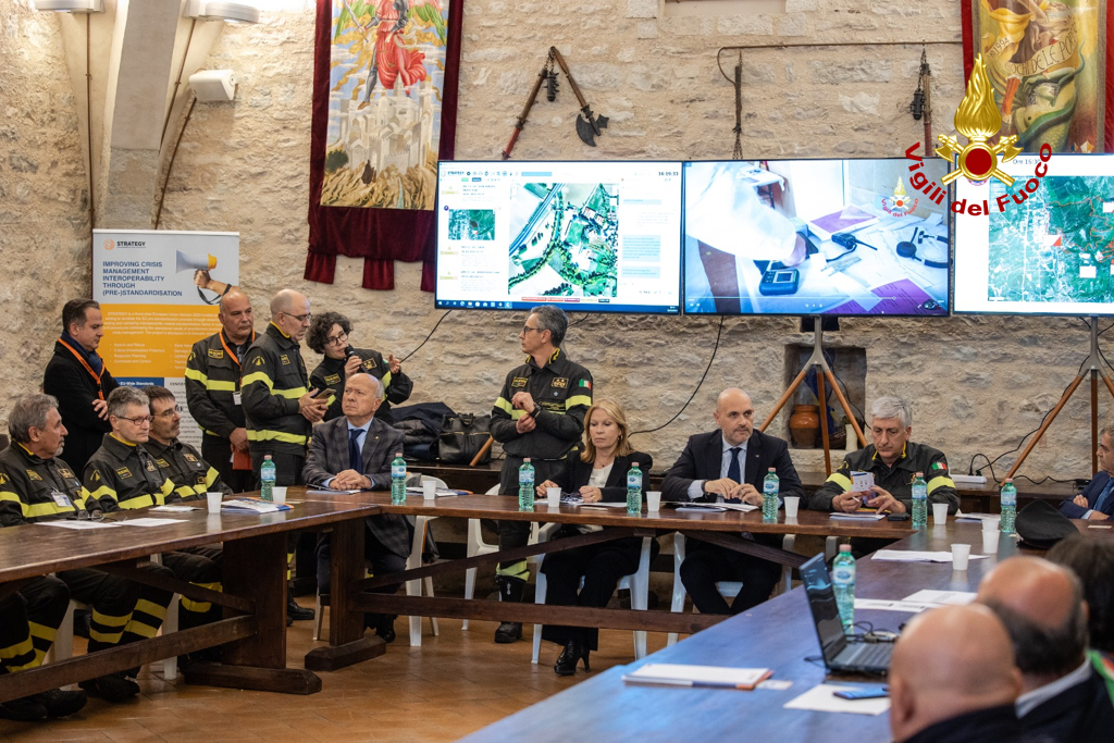 Nello specifico nella giornata di oggi 30 marzo sono state effettuate manovre operative sul campo nell’area dello stadio comunale di Valfabbrica, dove è stato testato lo standard dedicato alla risposta a maxi emergenze con alto numero di vittime unitamente allo standard per la condivisione di allerte sui social media, e a Gualdo Tadino è stato messo alla prova uno standard mirato a facilitare lo scambio dei piani di emergenza, un altro rivolto al coordinamento della risposta agli incendi boschivi ed infine è stato testato uno standard mirato ad assicurare la continuità della catena delle prove registrate con supporto digitale in contesti NBCR (Nucleare Bilogico Chimico Radiologico).