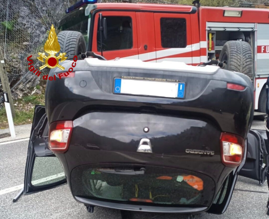 Un’auto si è ribaltata questa mattina lungo la strada 298 che percorre la gola del Bottaccione e che collega Gubbio a Scheggia.