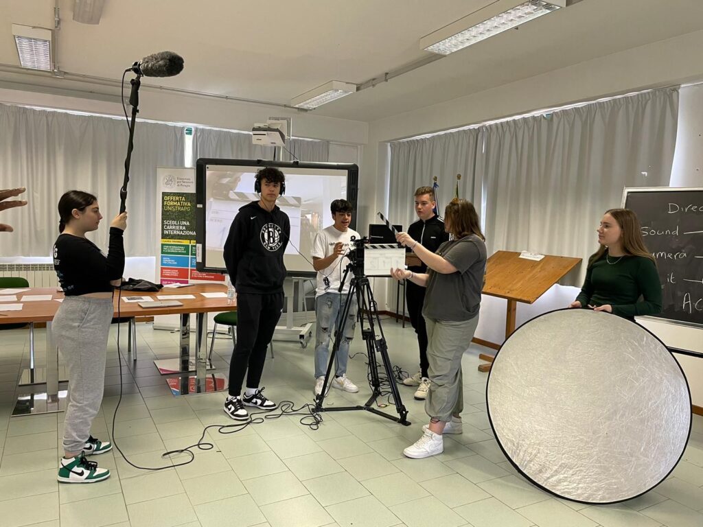 La lezione è stata ispirazione per il laboratorio di digital storytelling, che si è tenuto nei giorni successivi con la guida di un esperto esterno e che ha visto i ragazzi cimentarsi nella realizzazione di due cortometraggi sul tema dell’amicizia e del tradimento. Le riprese video sono state effettuate nel centro storico di Nocera Umbra, dando così modo agli studenti nocerini e ai loro coetanei stranieri di esplorare la città e di osservarla da un punto di vista inedito: quello della telecamera.