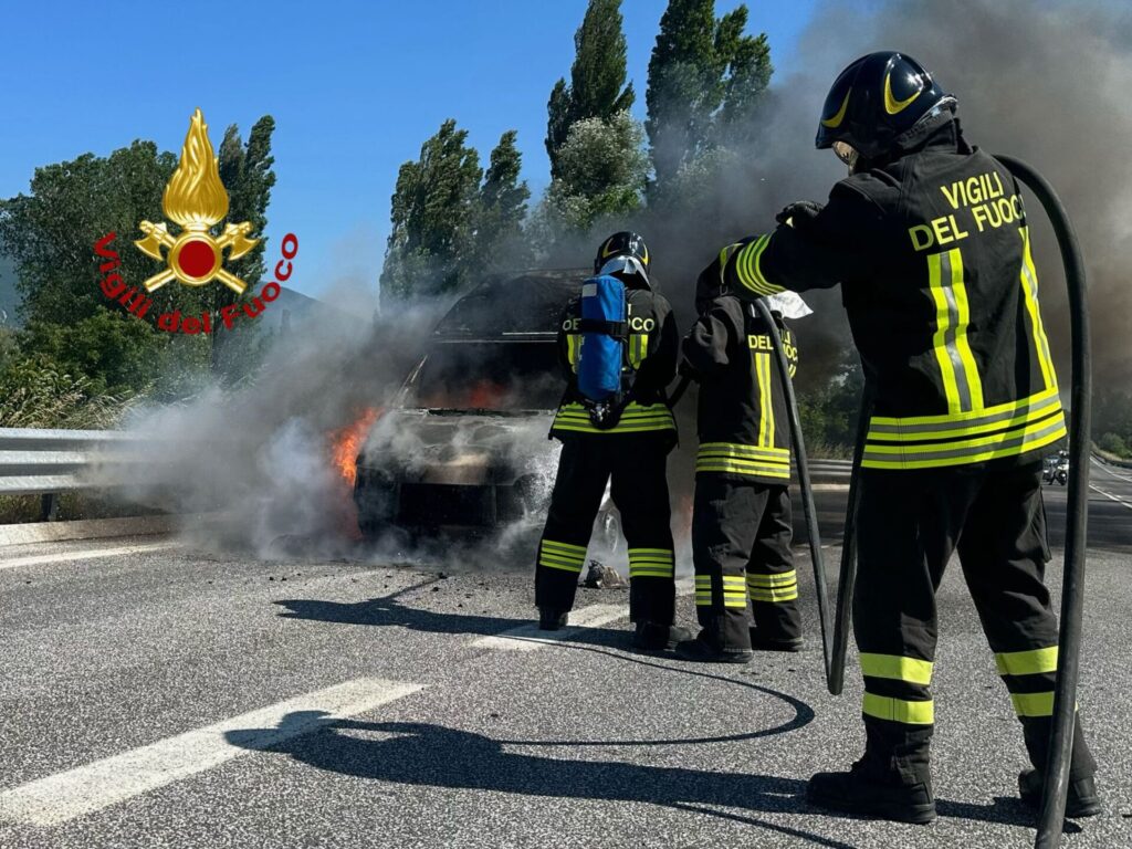 Un furgone si è incendiato e, mentre i pompieri domano le fiamme, i carabinieri effettuano i rilievi del caso mentre è posta in sicurezza la circolazione stradale .