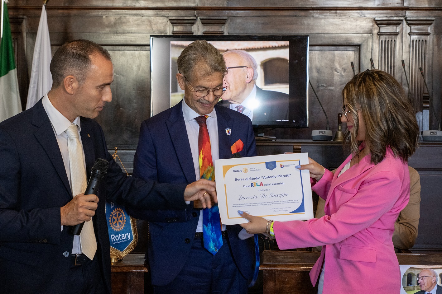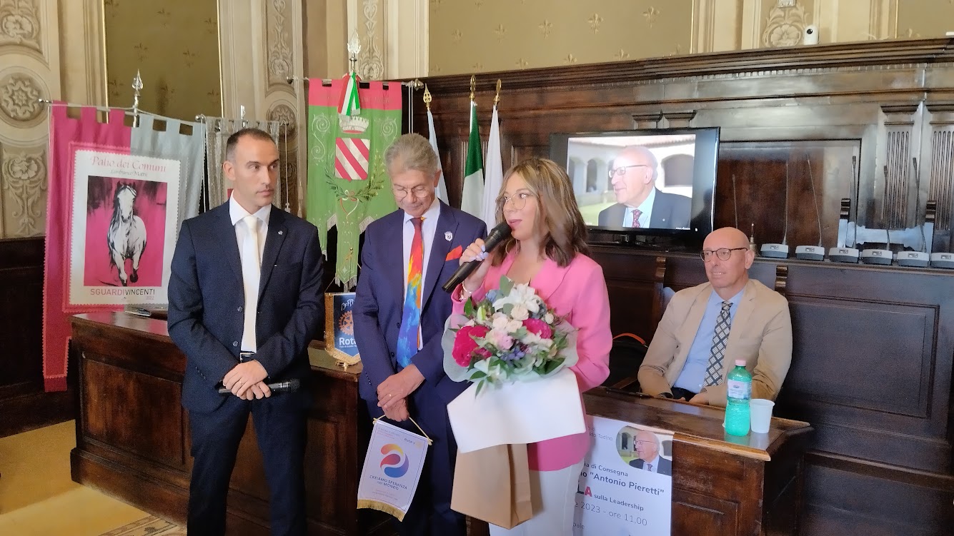 Su iniziativa del Rotary Club Gualdo Tadino, in collaborazione con il Comune di Gualdo Tadino e con l’Istituto di Istruzione Superiore Raffaele Casimiri, si è svolta venerdì mattina la cerimonia di consegna della borsa di studio “Antonio Pieretti” alla studentessa Lucrezia De Giuseppe che le consentirà di partecipare al Corso Ryla sulla Leadership.
