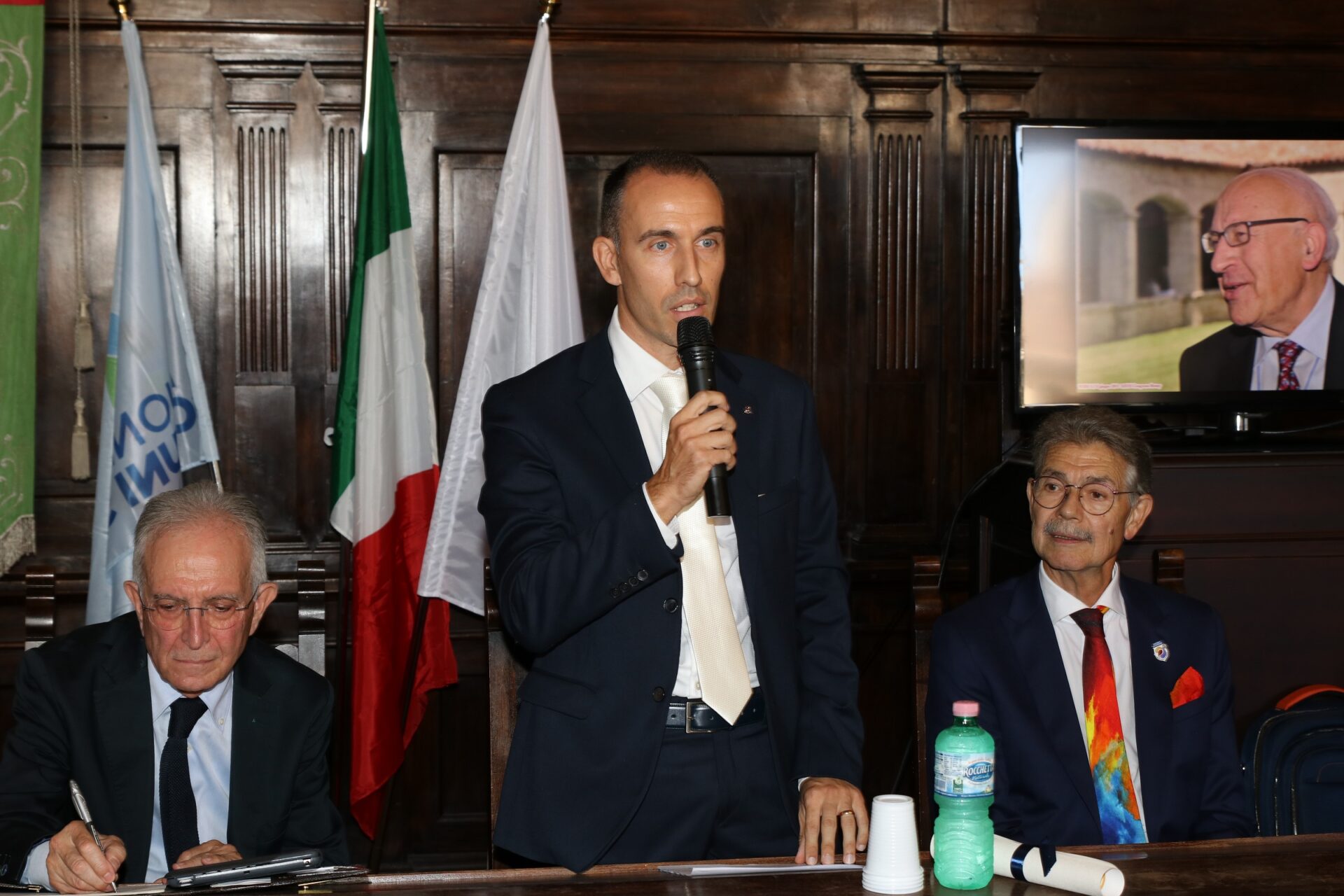 Moderata da Sofia Raggi, la cerimonia si è aperta con l’intervento del presidente del Rotary Club Gualdo Tadino Manuele Pompei che, dopo aver ringraziato tutti i presenti, ha aggiunto: “Con una sala consiliare così piena Antonio, che ci lasciava il 16 settembre dello scorso anno, sarà sicuramente felice in questo momento. Nella sua vita professionale, Antonio si è dedicato tantissimo alla formazione dei ragazzi, sia sotto il profilo dell’insegnamento universitario e sia nel trasferire loro quei valori etici e morali di cui lui era custode e che ha professato per tutta la sua vita, aiutando quei ragazzi a crescere e diventare persone per bene. Proprio per questo amore che lui aveva verso le nuove generazioni a cui ha dedicato gran parte della sua vita e di cui è stato grande fonte di ispirazione abbiamo pensato a questo progetto”.