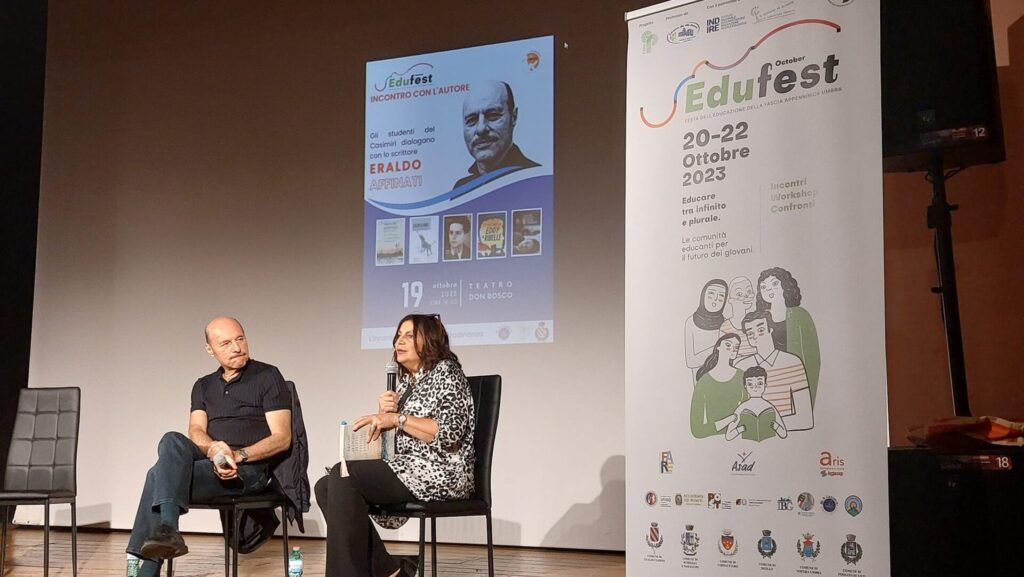 Grande partecipazione all’incontro dibattito fra Eraldo Affinati e gli studenti dell’Istituto “Casimiri”, che si è svolto il 19 ottobre presso il Teatro Don Bosco di Gualdo Tadino.