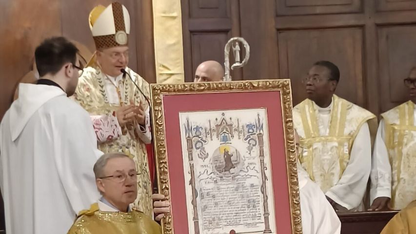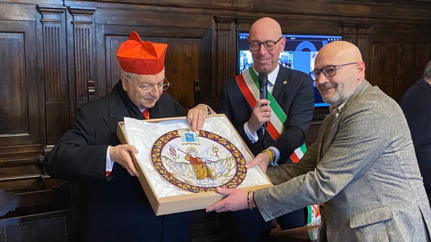 Al termine della celebrazione il cardinale ha impartito la benedizione papale con l’indulgenza plenaria e gli è stata consegnata una pergamena a triplice firma (del sindaco di Gualdo Tadino, Massimiliano Presciutti, del vescovo Sorrentino e del presidente del comitato organizzatore Carlo Catanossi) per comunicare a Papa Francesco le intenzioni del Premio Beato Angelo 2024.