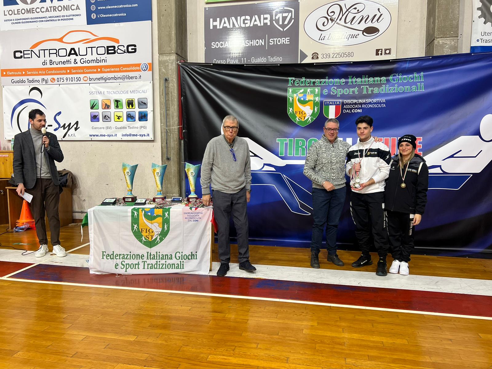 Presenti anche diversi dirigenti Figest tra cui il presidente per la provincia di Perugia, Alessio Passeri, il responsabile della formazione della Federazione Italiana Giochi e Sport Tradizionali, Claudio Mantovani, il collaboratore responsabile del tiro alla fune indoor Matteo Capeccia, i referenti della specialità della fionda, Marco Brunetti e Sergio Sabbatini, il segretario generale Sergio Manganelli. Puntuale, come sempre, il lavoro del settore arbitrale e dei giudici al tavolo.
