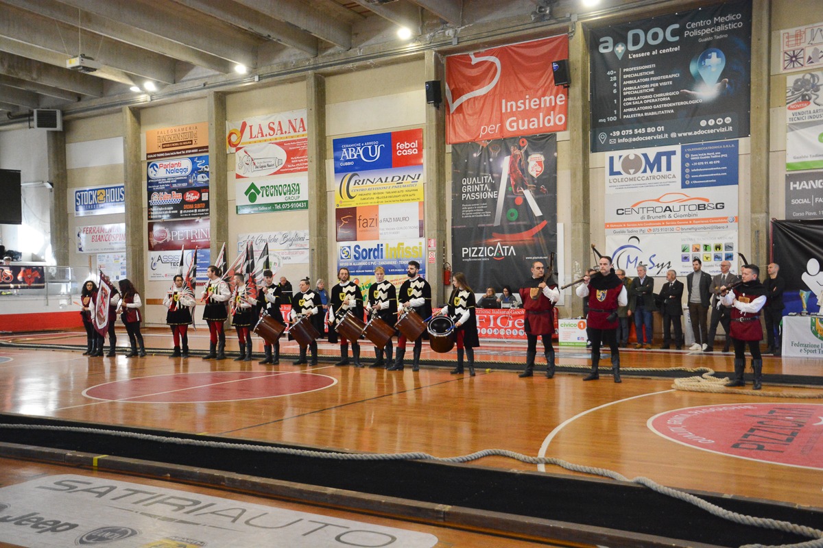 L’evento sportivo, che ha visto i professionisti del tiro alla fune stringere di nuovo la corda nel primo vero appuntamento della stagione indoor, è stato promosso dalla Figest, la Federazione Italiana Giochi e Sport Tradizionali, con il patrocinio del Comune di Gualdo Tadino. Le delegazioni sono state accolte dagli sbandieratori, balestrieri e tamburini dei Giochi de le Porte.