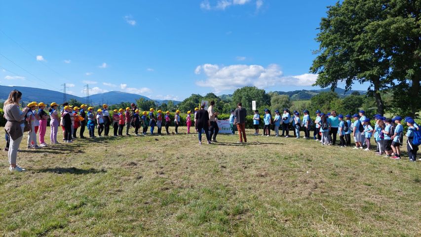 Nei pressi di Casone è avvenuto l’incontro e lo scambio di testimone tra le classi della scuola primaria di Gaifana (Omnicomprensivo di Nocera Umbra) e quelli del plesso di San Rocco (Comprensivo di Gualdo Tadino). Successivamente i ragazzi dei plessi gualdesi di Cartiere e di San Pellegrino hanno raggiunto a piedi la frazione di Palazzo Mancinelli dove hanno consegnato il testimone ai ragazzi del plesso di Fossato di Vico, parte dell’Istituto Comprensivo Sigillo.