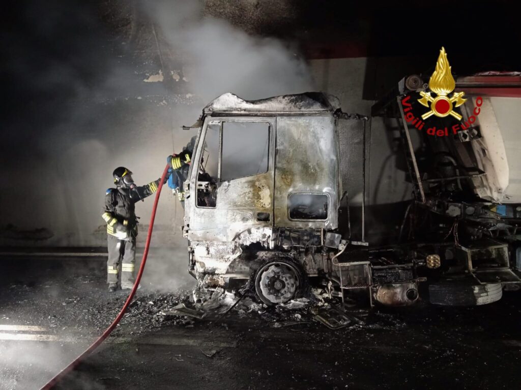 L’incidente si è verificato intorno alle 7 all’interno della galleria Colle del Prete, dove le fiamme hanno completamente distrutto la cabina di un mezzo pesante da cava.