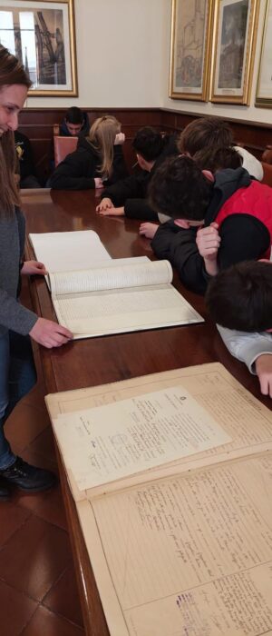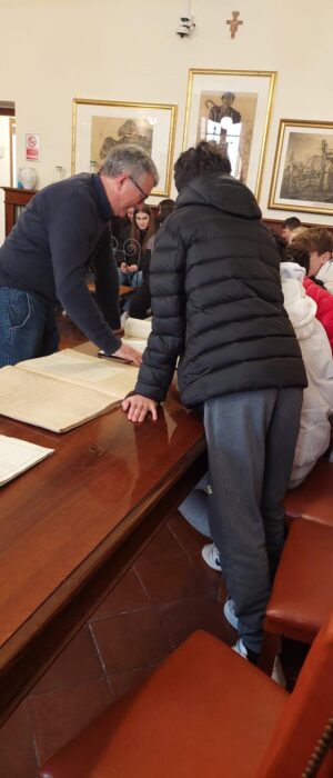 La dirigente Monia Columbaria ha poi mostrato una serie di registri dell’anagrafe (atti di nascita) dagli inizi del Novecento ad oggi, facendo notare l’evoluzione fisica e contenutistica nel tempo di questi documenti.