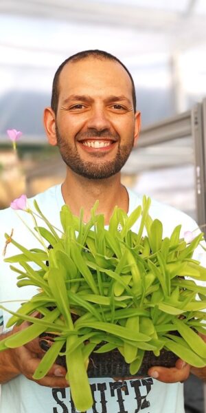 “Coltivo piante carnivore dal 1998 e sono socio dell’Associazione Italiana Piante Carnivore dai primi anni 2000. Nel corso degli anni ho partecipato a concorsi e manifestazioni, vincendo diversi premi nelle cosiddette ‘Olimpiadi Carnivore’ per le piante più belle. Grazie a tutto ciò sono stato invitato come esperto in trasmissioni televisive come UnoMattina su Rai1. Inoltre tengo lezioni nelle scuole primarie e faccio divulgazione nelle fiere di settore. È un modo per avvicinare sempre più persone a questo mondo straordinario.”