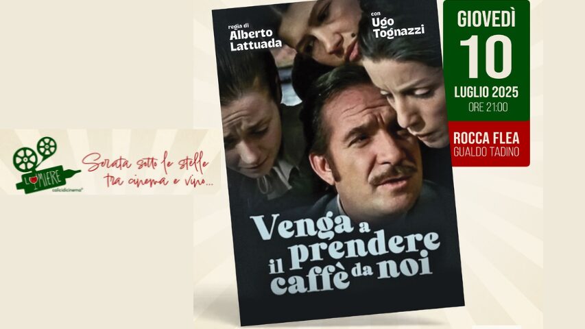 Resta immutato il programma della serata, che vedrà la proiezione del film “Venga a prendere il caffè da noi” di Alberto Lattuada, interpretato da uno straordinario Ugo Tognazzi, e sarà accompagnata da una degustazione speciale di vino.