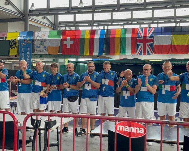 È un trionfo tutto gualdese quello che arriva dai Campionati Europei di tiro con la fionda, in corso a Deurne (Anversa) in Belgio. Sergio Sabbatini, capitano della nazionale italiana e membro storico del Gruppo Fiondatori Gualdo Tadino, si è laureato Campione Europeo Senior, portando l’Italia sul gradino più alto del podio e confermando il suo straordinario stato di forma.