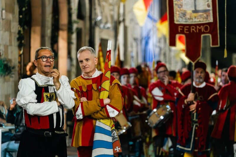 Memoria, orgoglio cittadino e spettacolo si sono uniti per dare vita a una coinvolgente serata con la storica compagnia gualdese, che dal 1979 porta alto il nome della città in Italia e nel mondo, a fare da padrone di casa, guidata dallo storico capitano Luca Centini, presente nel gruppo sin dalla fondazione.