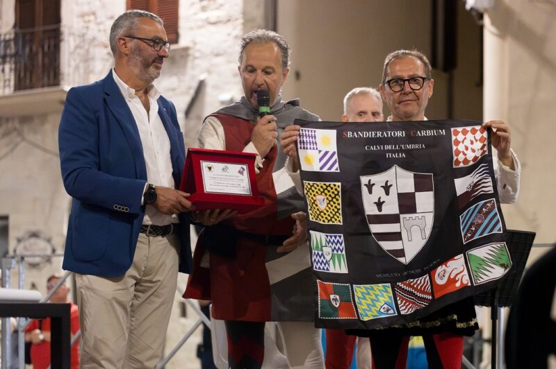 “La bandiera non è solo un pezzo di stoffa, è una storia da raccontare e un’emozione da vivere – ha detto il sindaco Presciutti – Grazie al Gruppo Sbandieratori e Musici della Città di Gualdo Tadino: un pezzo di storia che prosegue verso nuovi ed ambiziosi traguardi.”