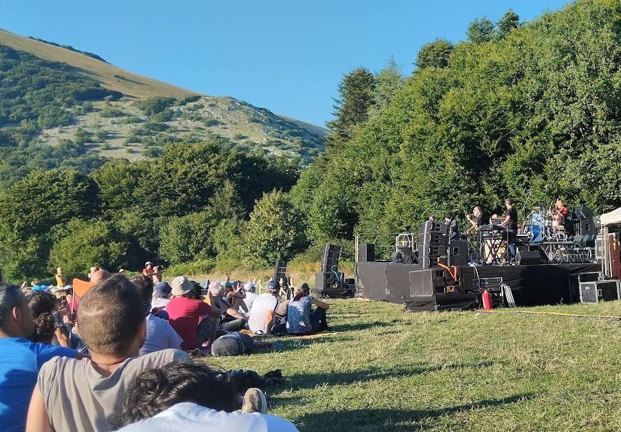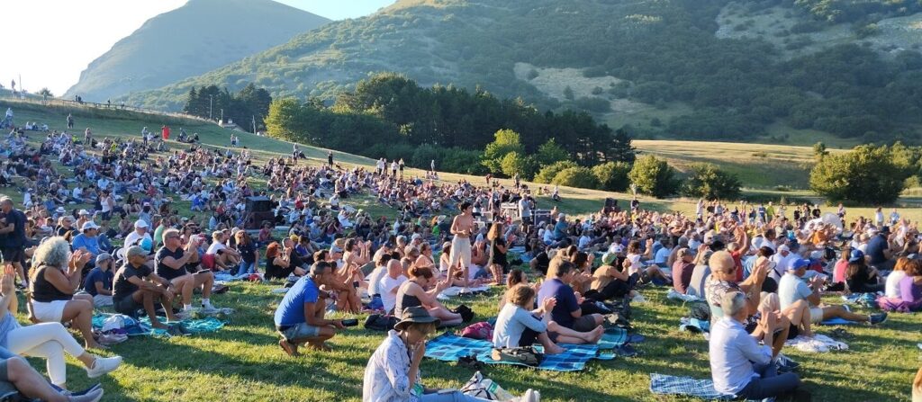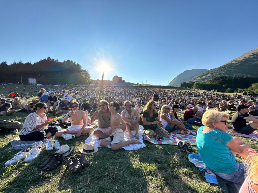 La vallata, immersa nel verde dell’Appennino Umbro-Marchigiano, è stata raggiunta da tansissimi spettatori, molti dei quali a piedi attraverso i sentieri o con le navette dell’organizzazione. Il pubblico, composto da fan arrivati da tutta Italia e anche dall’estero, si è adagiato sui prati in un’atmosfera di rara intimità per un concerto di questa portata.