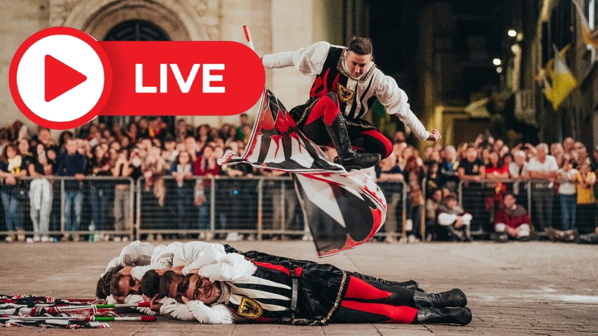 In diretta i Giochi de le Porte. Esibizione tamburini e sbandieratori