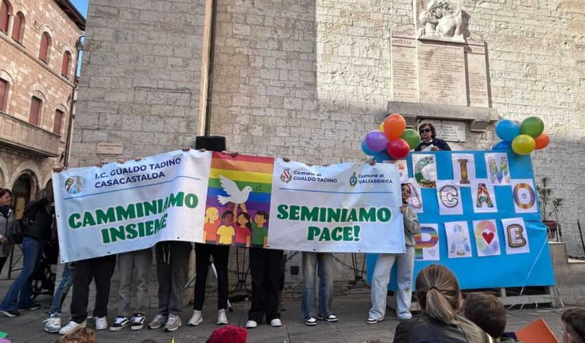 L’evento a Gualdo Tadino è stato aperto in piazza Martiri della Libertà dalla dirigente scolastica Angela Codignoni e dal sindaco Massimiliano Presciutti, che hanno salutato gli studenti sottolineando il valore di una giornata che ha inteso unire la scuola nel nome della pace e dell’accoglienza.