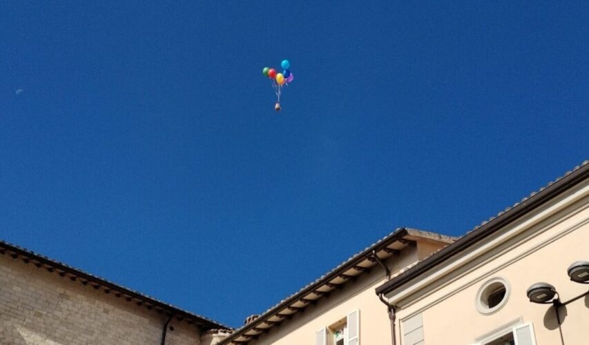 Le due piazze sono state idealmente dal volo di una mongolfiera con i colori dell’arcobaleno.