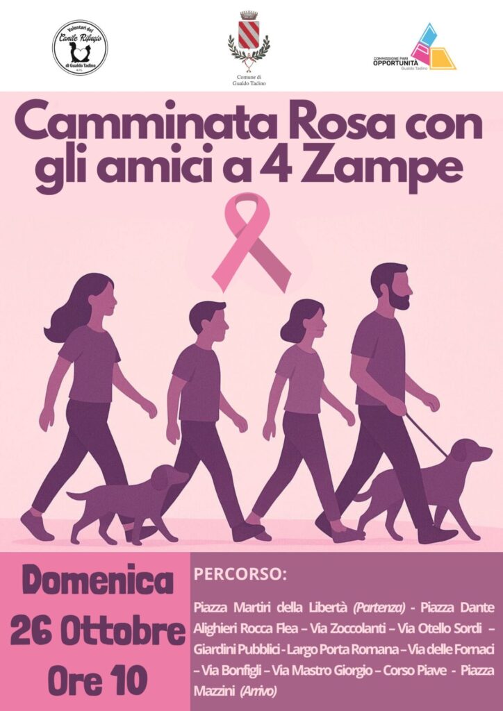 Domenica 26 ottobre alle 10 si svolgerà infatti la “Camminata Rosa con gli amici a quattro zampe”, organizzata da Comune di Gualdo Tadino, Commissione Pari Opportunità e APS Volontari del Canile Rifugio di Gualdo Tadino.