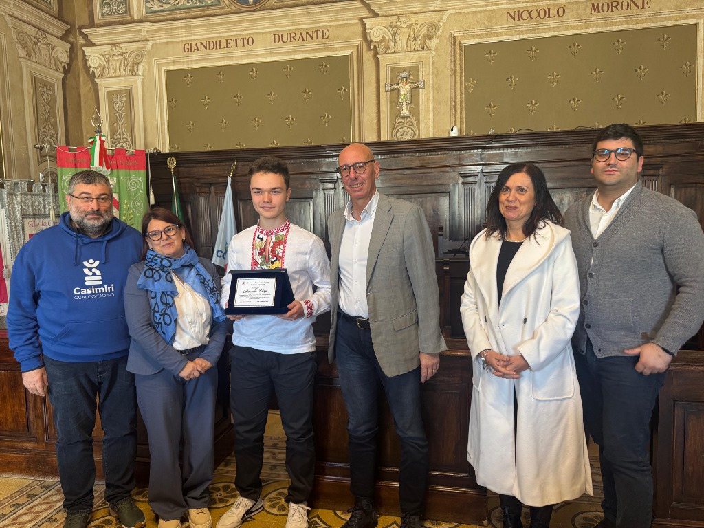 L’amministrazione comunale ha voluto rendere omaggio anche ad Alessandro Lytvyn, brillante studente dell’Istituto di Istruzione Superiore “Raffaele Casimiri”, che ha conquistato la medaglia d’oro alle Olimpiadi Mondiali di Matematica Mentale, tenutesi recentemente a Valencia.