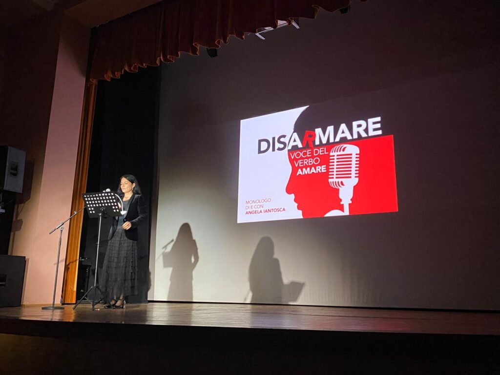 Ad aprire la due giorni di Articolo 21 è stata la rappresentazione “Disarmare. Voce del verbo amare” a cura dell’attrice, scrittrice e giornalista Angela Iantosca.