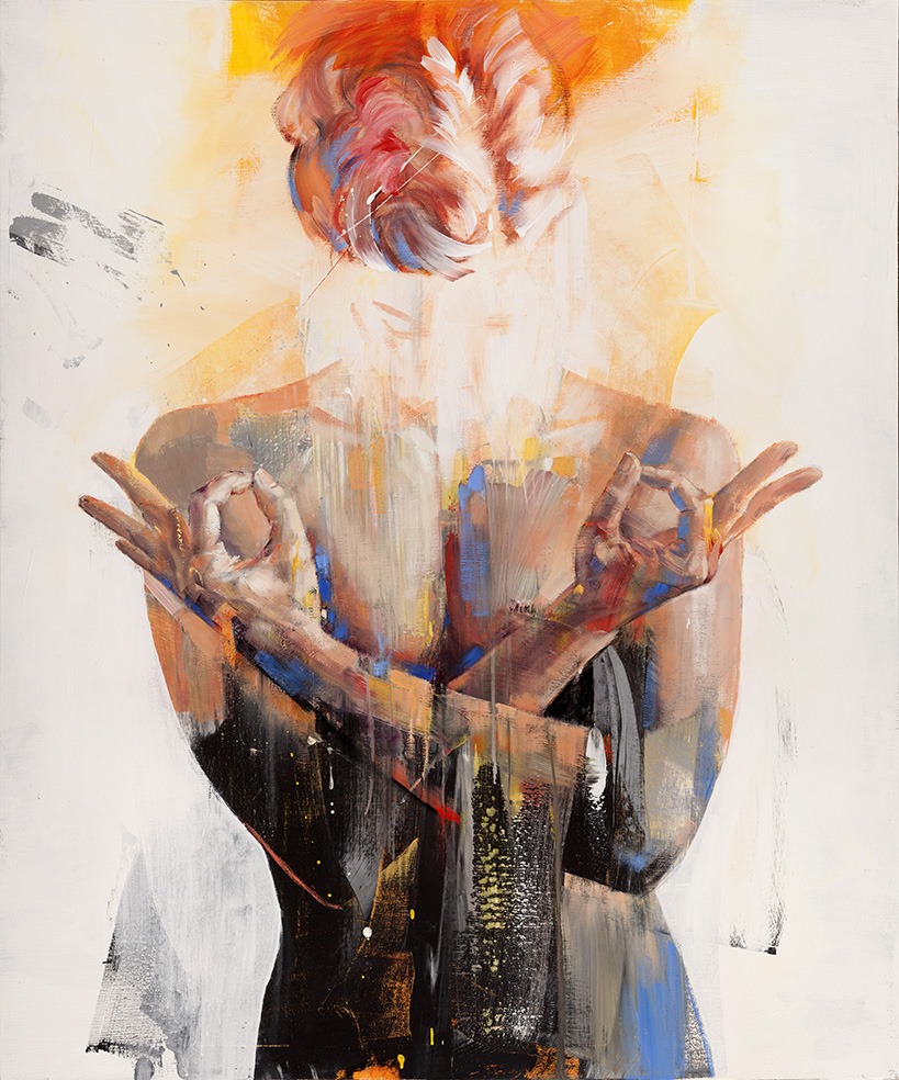 Elemento cardine dell’opera è la luce: I volti, sovente obliterati o purificati da violenti lavaggi di colore chiaro (…) si ergono a testimonianze ieratiche di una luce interiore, di un principio spirituale che nega la prigione dell’apparenza materiale (Maya)”. Le mani, invece, conservano la loro concretezza volumetrica, “impegnate in gesti rituali e meditativi, fungendo da cerniera tra la forza fisica e la tensione spirituale.”