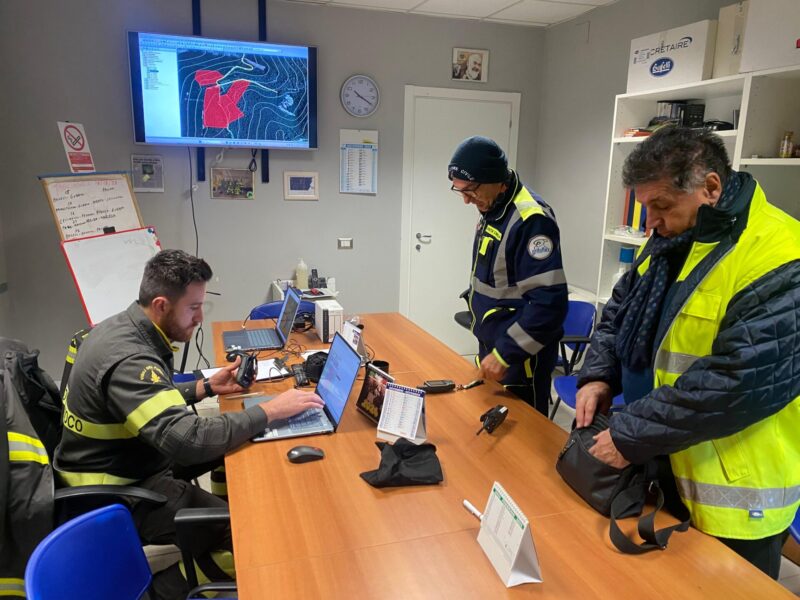 Ciascuna squadra ha poi proceduto a raggiungere l’area di competenza per dare avvio all’esercitazione. Conclusa questa fase pratica, il nucleo cinofili del CNVVF e i cinofili volontari della Protezione civile hanno simulato un intervento di ricerca persona.