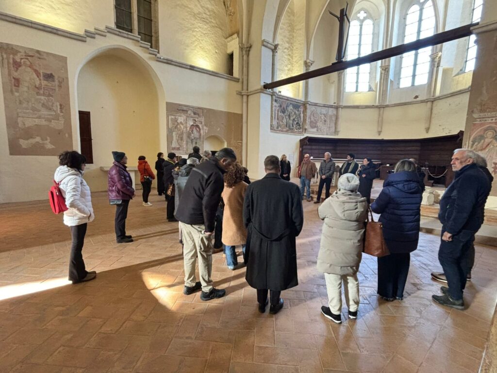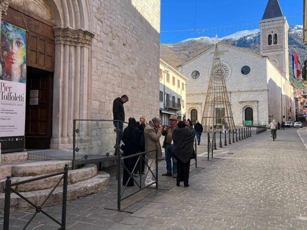 La chiesa monumentale di San Francesco a Gualdo Tadino “disvela tutta la sua bellezza“, scrivono le curatrici Catia Monacelli e Sara Taglialagamba, e si fa complice di un’arte che non si accontenta della superficie.