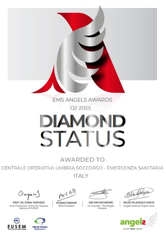 La Centrale Operativa 118 dell’Umbria ha ricevuto il Premio Angels Diamond 2025, il più alto riconoscimento assegnato dal programma internazionale Angels per l’eccellenza nella gestione dell’ictus cerebrale.