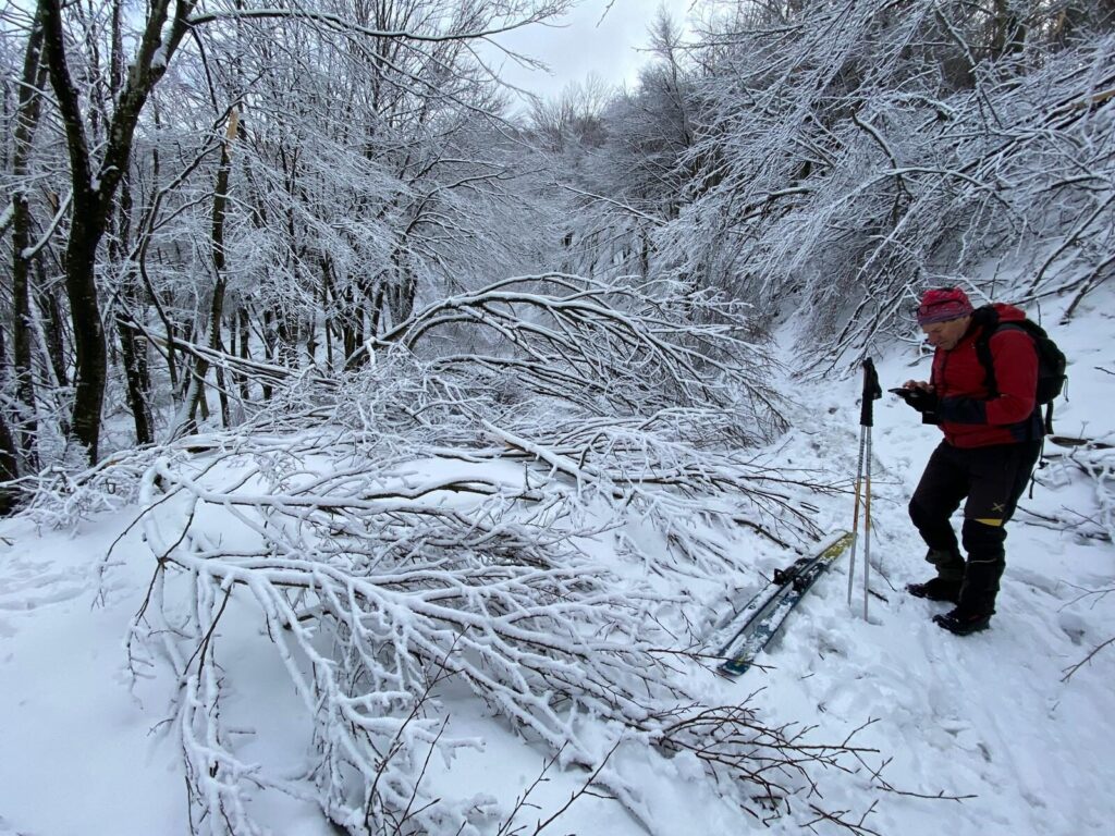 La notizia si ricollega a quanto già riportato su queste pagine lo scorso 6 gennaio, quando erano stati segnalate diverse rotture di alberature lungo la strada di Valsorda e nelle zone limitrofe. Da allora il quadro si è ulteriormente aggravato, rendendo impraticabili alcuni tratti e anche impedendo lo svolgimento di alcune attività programmate dallo Ski Club Valsorda.