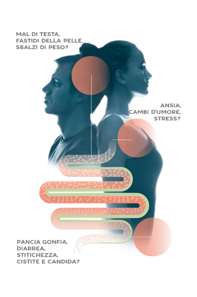 Il microbiota è l’insieme dei microrganismi presenti nel tratto gastrointestinale. Quando è in equilibrio ci garantisce uno stato di benessere globale. Al contrario, quando non lo è, causa una serie disturbi che vanno oltre la sfera digestiva, tra cui pancia gonfia, eruttazione continua dopo i pasti, diarrea e stitichezza, sensibilità alimentari, insonnia, irritabilità, ansia, stress, sbalzi di umore, stanchezza, fastidi della pelle, mal di testa, sbalzi di peso, cistite e candida ricorrenti, fino a un generale malessere.