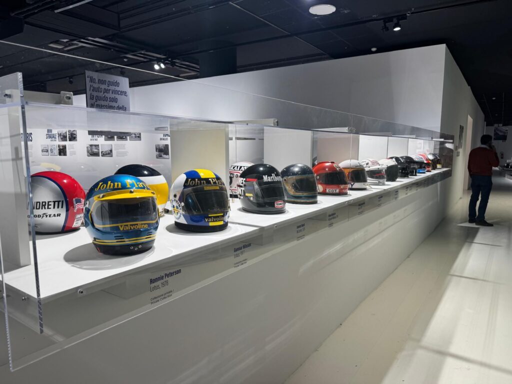Si possono ammirare anche 28 caschi, 4 tute indossate da Jim Clark, Jackie Stewart, Vittorio Brambilla e Riccardo Patrese, programmi di gara da ogni continente e il motore Ford Cosworth DFV.