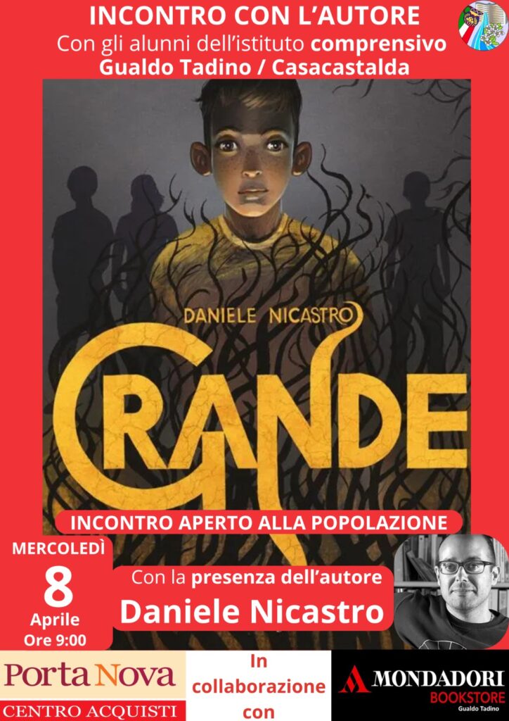 La storia di Luca, un ragazzino del nord che trascorre le vacanze in Sicilia e si trova alle prese con scelte difficili legate alla criminalità, è tutta nel libro “Grande” di Daniele Nicastro, che sarà presentato mercoledì 8 aprile alle ore 9.00 presso il centro commerciale Porta Nova in un evento organizzato dal Centro stesso e dalla libreria Mondadori.