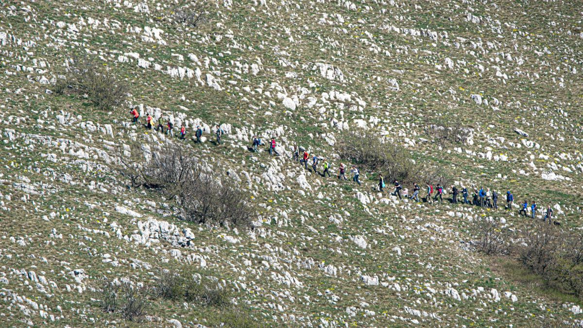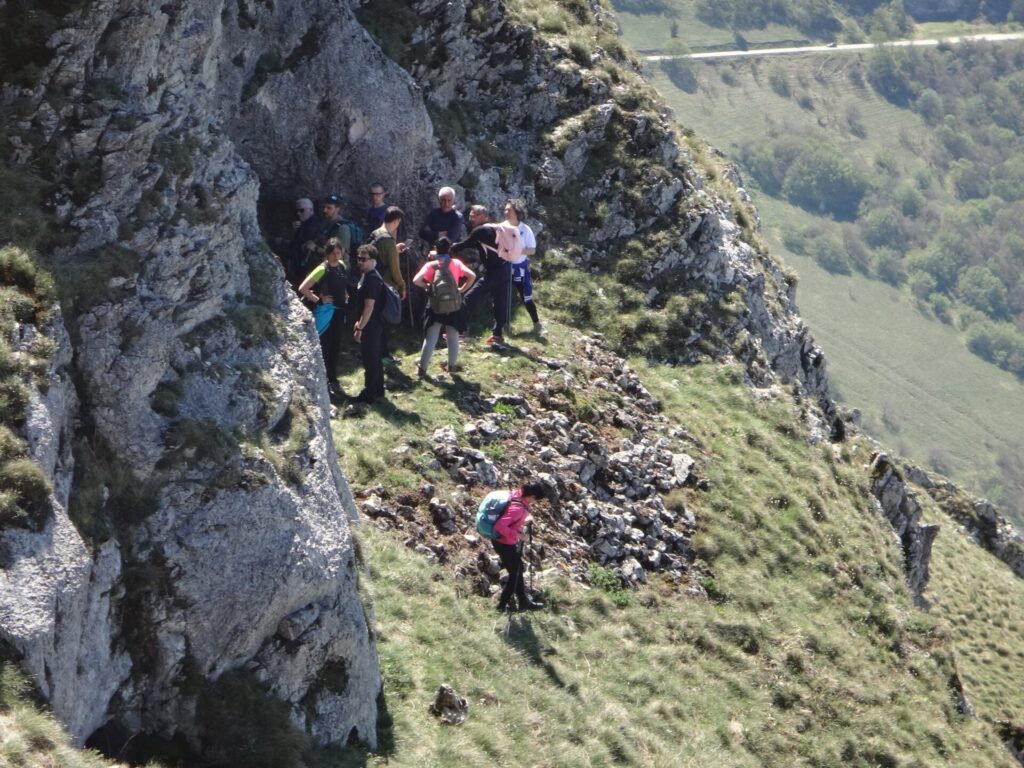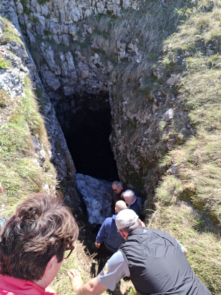 L’escursione è poi proseguita verso la Cima delle Balze di Monte Maggio, per scendere successivamente lungo la cengia Fra’ Mauro fino alla Grotta delle Balze, posta a 1.303 metri di quota. Qui, accanto al valore paesaggistico, emerge anche l’importanza scientifica del sito, all’interno del quale anni fa sono stati rinvenuti resti ossei risalenti a circa 10mila anni fa, testimonianza della fauna che popolava l’Appennino in epoca preistorica.