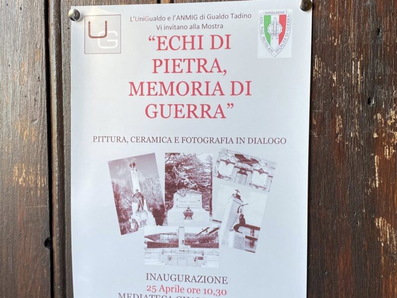 Al termine delle commemorazioni è stata inaugurata la mostra “Echi di pietra, memoria di guerra”, allestita presso la Mediateca del Museo dell’Emigrazione. L’esposizione nasce dalla collaborazione tra UniGualdo, Comune, ANMIG Gualdo Tadino e propone un percorso che mette in relazione pittura, ceramica e fotografia.