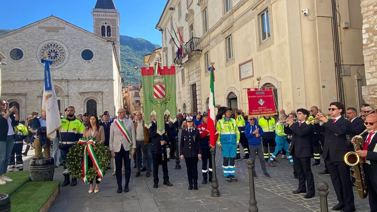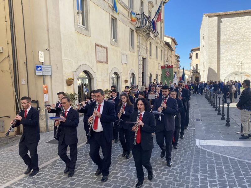 La giornata si è aperta con il tradizionale corteo partito da Piazza Martiri, guidato dalla banda musicale cittadina seguita dal Gonfalone del Comune, dall’amministrazione comunale e dai rappresentanti di associazioni e corpi d’arma.
